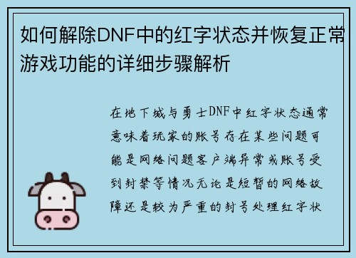 如何解除DNF中的红字状态并恢复正常游戏功能的详细步骤解析